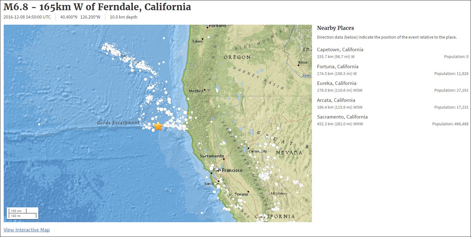 Ισχυρός σεισμός μεγέθους 6,8 βαθμών της κλίμακας Ρίχτερ σημειώθηκε στις 16.52 ώρα Ελλάδας στη θαλάσσια περιοχή δυτικά της Καλιφόρνια σύμφωνα με το USGS.