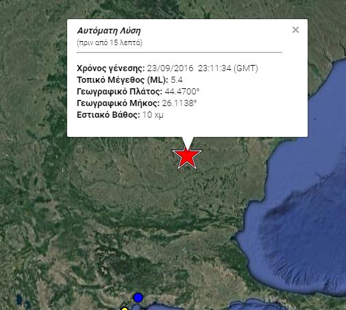 Όσο για το επίκεντρο του σεισμού, εντοπίστηκε στα 145 χιλιόμετρα βόρεια του Βουκουρεστίου και στα 325 χιλιόμετρα βόρεια της Ορεστιάδας.