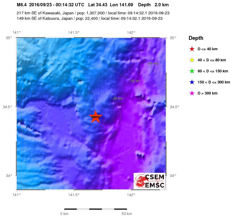 Ισχυρός σεισμός, μεγέθους 6.4 βαθμών της κλίμακας Ρίχτερ, σημειώθηκε στις 03.15 τα ξημερώματα της Παρασκευής (ώρα Ελλάδος) ανοικτά της χερσονήσου Χονσού, στην Ιαπωνία.