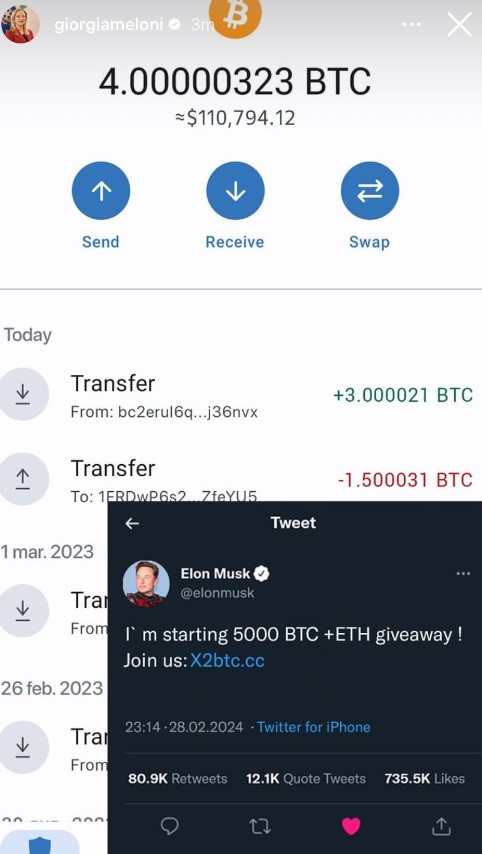 Οι χάκερς ανήρτησσν δήθεν μήνυμα του Έλον Μασκ, την ώρα που η Μελόνι επέστρεφε με το κυβερνητικό αεροσκάφος από την Αίγυπτο στη Ρώμη.