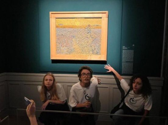 Στις αρχές του μήνα, δύο ακτιβιστές της “Last Generation” έριξαν πουρέ πατάτας σε έναν πίνακα του Κλοντ Μονέ στο μουσείο Μπαρμπερίνι του Πότσδαμ, στη Γερμανία. Άλλοι οικολόγοι ακτιβιστές κόλλησαν στο τζάμι που προστατεύει το «Κορίτσι με το μαργαριταρένιο σκουλαρίκι» του Γιοχάνες Βερμέερ, σε ένα μουσείο της Ολλανδίας και κάποιοι έριξαν σούπα στον πίνακα «Ηλιοτρόπια» του Βαν Γκογκ, στην Εθνική Πινακοθήκη του Λονδίνου.