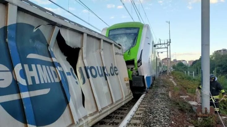 🔵 #Milano Tre feriti e sei contusi il bilancio, al momento, del deragliamento di un treno avvenuto stamattina. Trenord riferisce che la causa dell’incidente sarebbe riconducibile alla perdita di un container da parte di un convoglio merci. Rallentata la circolazione ferroviaria pic.twitter.com/POiQx7MThE