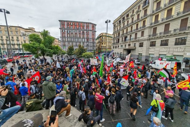 Στη διαδήλωση, με πορεία η οποία ξεκίνησε από τον σιδηροδρομικό σταθμό της Νάπολης, συμμετέχουν αριστερές οργανώσεις, φοιτητικές ενώσεις και αυτόνομα συνδικάτα. Πολλοί διαδηλωτές φώναξαν συνθήματα αλληλεγγύης στον παλαιστινιακό λαό.