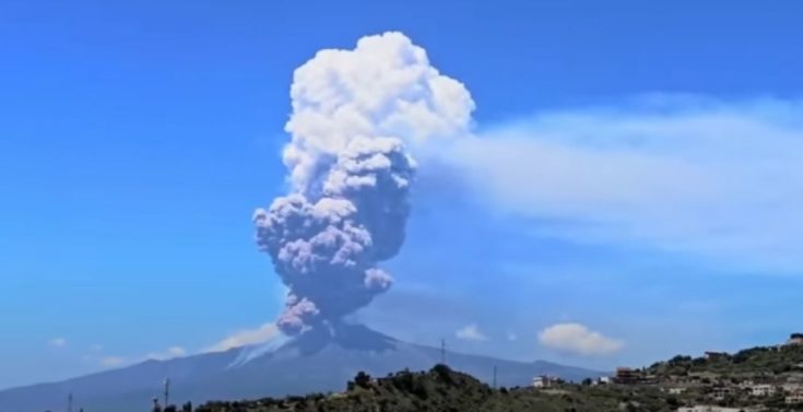 Μαύρο σύννεφο καπνού ύψους πολλών χιλιομέτρων έχει δημιουργηθεί πάνω από τον κρατήρα του ηφαιστείου Αίτνα στην Ιταλία.