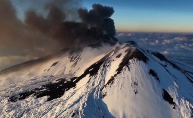 Σε βίντεο καταγράφονται οι εκρήξεις αλλά και σκιέρ που κατεβαίνουν τις πλαγιές του βουνού με πυκνό καπνό από πάνω τους.
