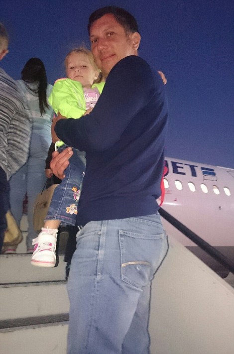 Ο Yury Shein την στιγμή που επιβιβάζεται στο μοιραίο Airbus μαζί με την κόρη του Anastasia