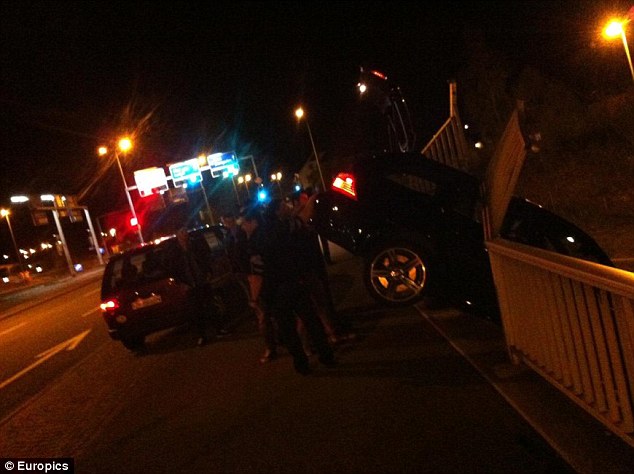 Άγιο είχε ένας 25χρονος Ελβετός όταν από υπερβολική ταχύτητα έχασε τον έλεγχο του αυτοκινήτου του σε έναν δρόμο ταχείας κυκλοφορίας κοντά στην Ζυρίχη. Το όχημα έμεινε κρεμασμένο στον αέρα όπως φαίνεται και από τις φωτογραφίες, αλλά για καλή του τύχη δεν έπεσε στον δρόμο που ήταν από κάτω. Ο οδηγός βγήκε χωρίς αμυχή, όπως και ο συνεπιβάτης του.