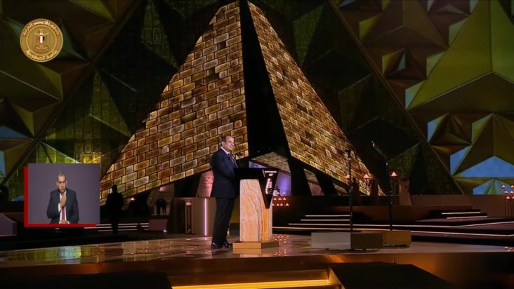 «Γράφουμε ένα νέο κεφάλαιο της ιστορίας του παρόντος και του μέλλοντος, στο όνομα αυτής της αρχαίας πατρίδας«, δήλωσε ο αρχηγός του κράτους της Αιγύπτου, από το μεγάλο προαύλιο του μουσείου που είναι αφιερωμένο στον φαραωνικό πολιτισμό, όπου οι αρχές έχουν οργανώσει ένα φαντασμαγορικό θέαμα.