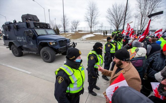 Η Ουάσινγκτον χαιρέτισε σήμερα την επέμβαση της καναδικής αστυνομίας που είναι σε εξέλιξη για να ανοίξουν αρκετοί συνοριακοί οδικοί άξονες στρατηγικής σημασίας μεταξύ των ΗΠΑ και του Καναδά, τους οποίους είχαν αποκλείσει διαδηλωτές που τάσσονταν κατά των υγειονομικών μέτρων, σύμφωνα με ανακοίνωση του Λευκού Οίκου.