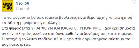 Πρόκειται για το κίνημα με τίτλο: «Κανέναν από τους 56», το οποίο στο προεκλογικό του σποτ καλεί τους ψηφοφόρους να μην ψηφίσουν κανέναν από τις 56 υφιστάμενους βουλευτές.