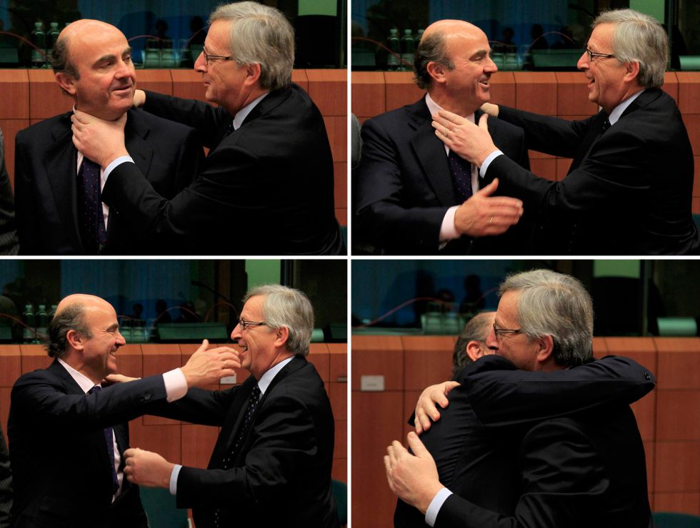 Να και μια εικόνα που σίγουρα δεν βλέπουμε συχνά. Ευρωπαίοι αξιωματούχοι να κάνουν “πλακίτσα” μεταξύ τους.Στις φωτογραφίες εικονίζονται ο επικεφαλής του Eurogroup Ζαν Κλοντ Γιούνκερ να κάνει πλάκα στον υπουργό Οικονομικών της Ισπανίας Λουίς ντε Γκίντος, κατά την άφιξή του στη συνδιάσκεψή: