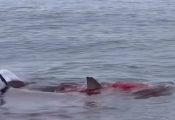 «Θεέ μου, αυτός ο καρχαρίας μόλις έφαγε αυτή τη φώκια», αναφώνησε η γυναίκα που μαγνητοσκοπεί το βίντεο.
