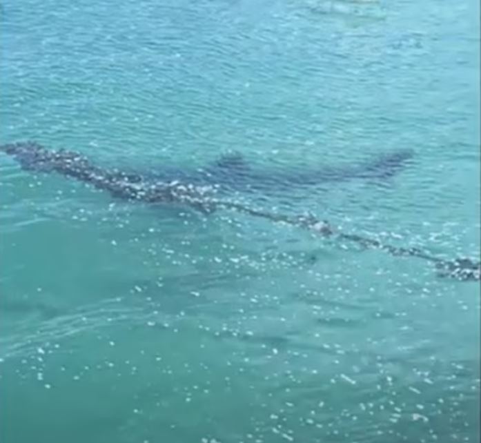 Ο νεαρός καρχαρίας κολύμπησε δίπλα στον λιμενοβραχίονα και την παραλία όπου τα μικρά παιδιά και οι έφηβοι έκαναν βουτιές.