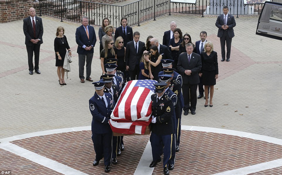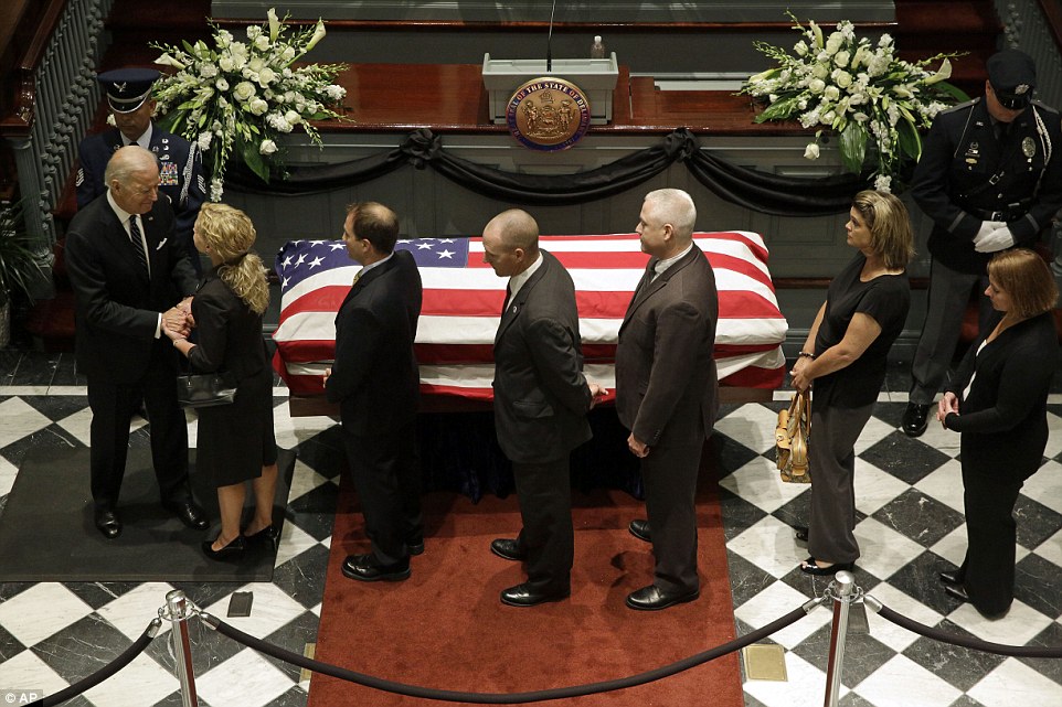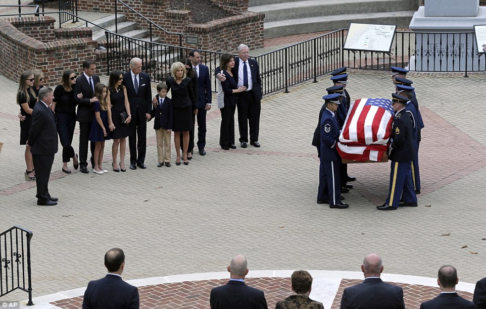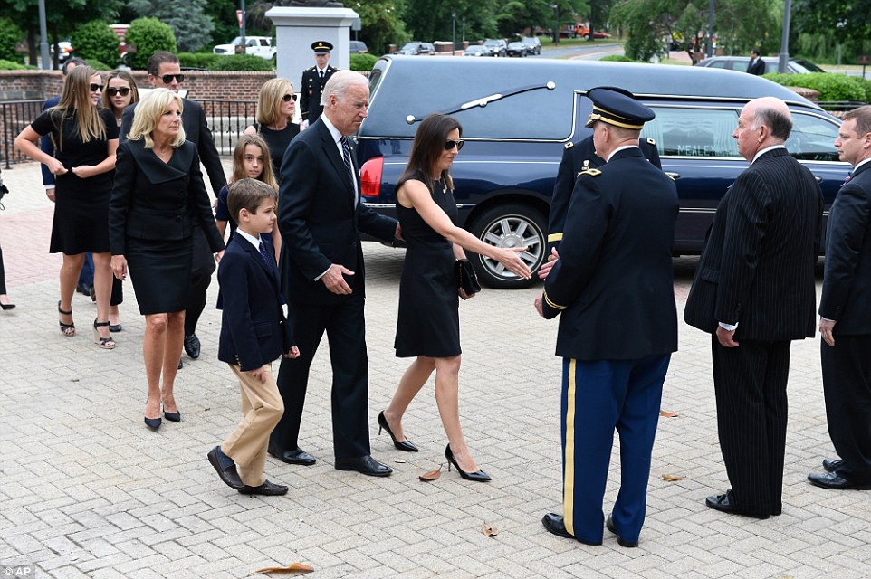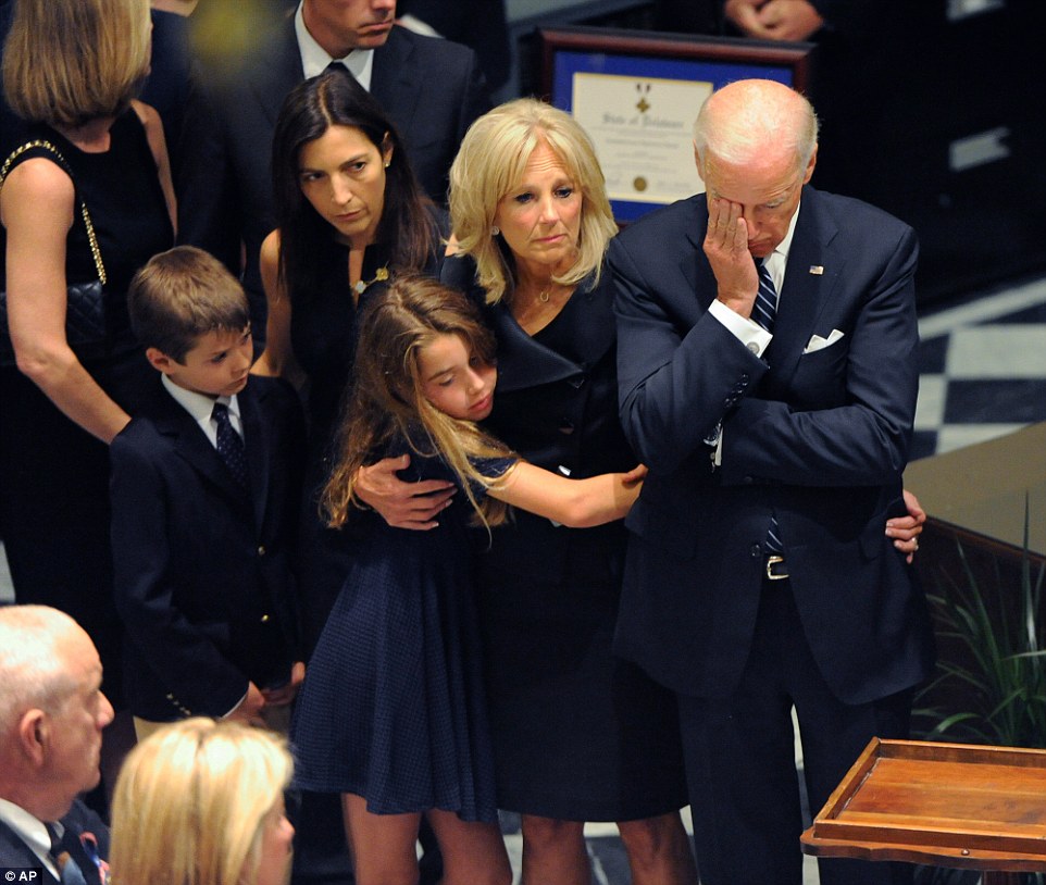 Ο αντιπρόεδρος έσκυψε να δώσει λόγια παρηγοριάς στα δύο μικρά παιδιά και τη χήρα του γιου του, Χάλι. Συγκλονισμένη η σύζυγος του αντιπροέδρου, Τζιλ Μπάιντεν, κρατούσε σφιχτά την 11χρονη εγγονή της Νάταλι, ενώ ο Μπάιντεν πήρε από το χέρι τον 9χρονο Χάντερ, καθώς η οικογένεια ακολούθησε το φέρετρο του Μπο στο Καπιτώλιο του Ντέλαγουερ.