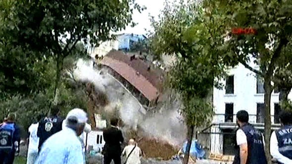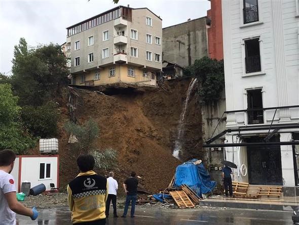 Στο κενό βρέθηκε να κρέμεται ένα τετραώροφο κτήριο στο κέντρο της Κωνσταντινούπολης το οποίο τελικά κατέρρευσε όταν το έδαφος υποχώρησε έπειτα από κατολίσθηση.