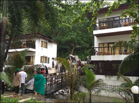 Σε τραγωδία μετατράπηκαν οι διακοπές αρκετών τουριστών σε παραθαλάσσιο θέρετρο της Ταϊλανδής όταν το διώροφο ξενοδοχείο στο οποίο διέμεναν κατέρρευσε μερικώς το πρωί του Σαββάτου, με αποτέλεσμα τουλάχιστον ένας άνθρωπος να χάσει τη ζωή του.