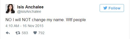 Η αγανακτισμένη κοπέλα ανάρτησε στο τέλος δημοσίευση στο twitter λέγοντας πως δεν θα αλλάξει το όνομά της
