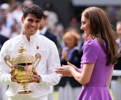 Προκαλώντας ρίγη σε διάσημους και μη παρόντες, η πριγκίπισσα της Ουαλίας Κέιτ, παρέδωσε το τρόπαιο του Wimbledon, στον Κάρλος Αλκαράθ σήμερα το απόγευμα, αφού ο Ισπανός κέρδισε το Grand Slam για δεύτερη συνεχόμενη χρονιά.