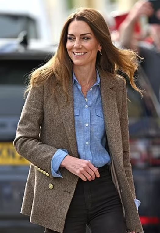 Η Κέιτ, 43 ετών, έλαμπε καθώς εμφανίστηκε με ένα κομψό, τουίντ σακάκι, ψαροκόκαλο αξίας 549 λιρών από την Holland Cooper. Η Κέιτ έφτασε έφτασε στο εμβληματικό αλιευτικό λιμάνι του 18ου αιώνα με τα έντονα χρωματιστά σπίτια, που έγινε διάσημο από την επιτυχημένη παιδική σειρά Balamory, με τον πρίγκιπα Ουίλιαμ.