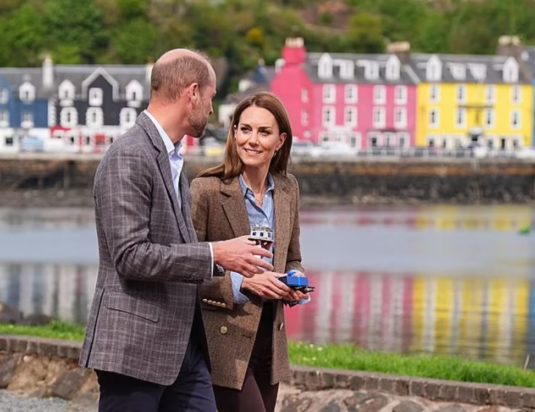 Η Κέιτ, 43 ετών, έλαμπε καθώς εμφανίστηκε με ένα κομψό, τουίντ σακάκι, ψαροκόκαλο αξίας 549 λιρών από την Holland Cooper. Η Κέιτ έφτασε έφτασε στο εμβληματικό αλιευτικό λιμάνι του 18ου αιώνα με τα έντονα χρωματιστά σπίτια, που έγινε διάσημο από την επιτυχημένη παιδική σειρά Balamory, με τον πρίγκιπα Ουίλιαμ.