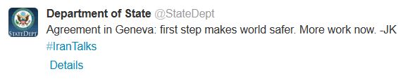 «Συμφωνία στη Γενεύη: Το πρώτο βήμα κάνειο ασφαλέστερο τον κόσμο. Ακόμα περισσότερη δουλειά τώρα».