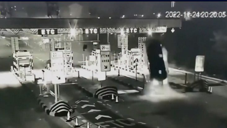 Ένα σοκαριστικό τροχαίο ατύχημα κατέγραψε κάμερα ασφαλείας στο διόδια εθνικής οδού στην Κίνα.
