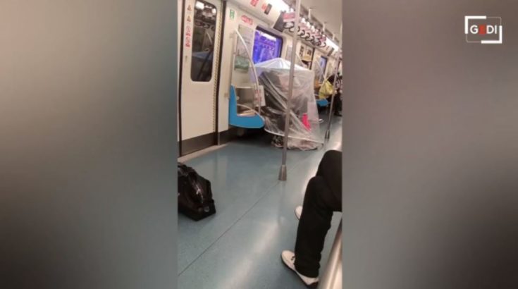 Στο μετρό υπάρχουν αυτοί που καλύπτονται με ένα πλαστικό σεντόνι