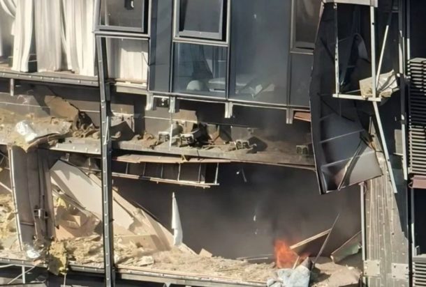Αυτόπτες μάρτυρες είπαν ότι μια γυναίκα έπεσε από το κτίριο -προφανώς αφού έχασε τις αισθήσεις του- και εθεάθη πεσμένη στο έδαφος σε μια σκηνή που καταγράφηκε σε βίντεο.