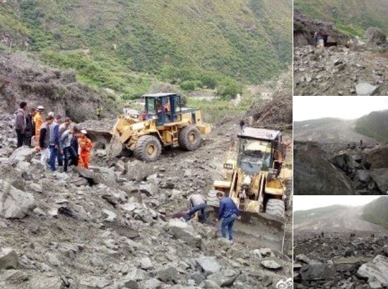 Το εθνικό τηλεοπτικό δίκτυο CCTV μεταδίδει απ’ ευθείας εικόνες αστυνομικών και κατοίκων που φορούν αδιάβροχα και στέκονται πάνω σε τεράστιους γκρι βράχους, ενώ δίπλα τους πορτοκαλί εκσκαφείς επιχειρούν να καθαρίσουν τα μπάζα.