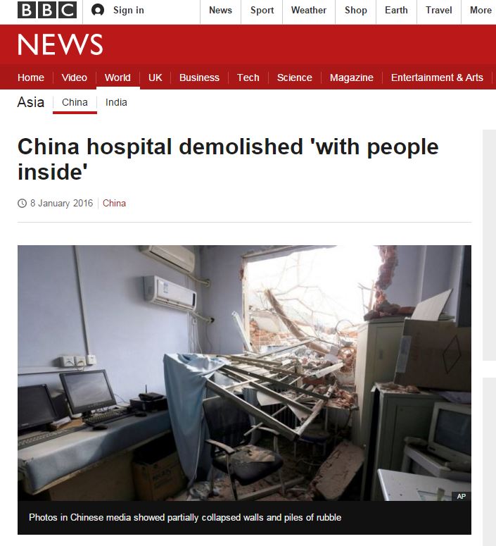 «Προσπαθούσα να χρησιμοποιήσω ένα διαγνωστικό μηχάνημα. Ο θόρυβος (της κατεδάφισης) ήταν τρομαχτικός» δήλωσε ο Λιου Σουνγκουάνγκ, διευθυντής του τμήματος ραδιολογίας ακτινολογίας στο τηλεοπτικό δίκτυο.