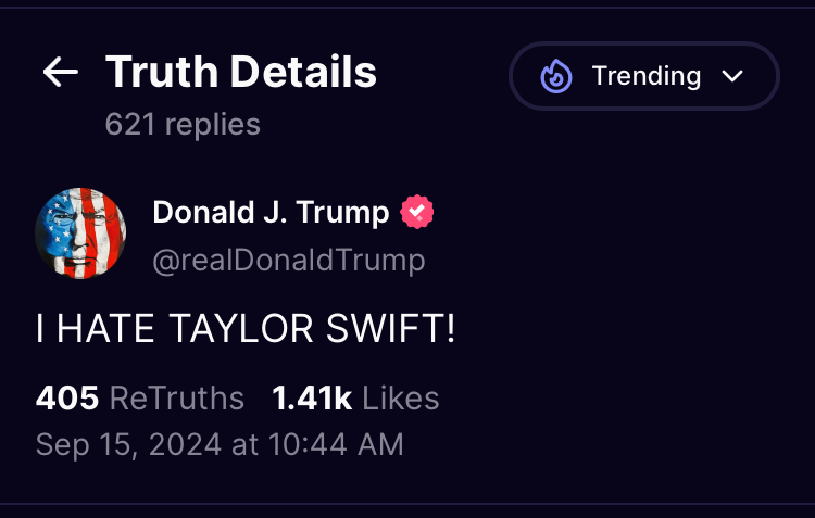 Άλλωστε, ο Τραμπ δεν έχει κρύψει ποτέ την αντιπάθειά του για την ποπ σταρ, δηλώνοντας χαρακτηριστικά στην πλατφόρμα του Truth Social: «Μισώ την Τέιλορ Σουίφτ!»