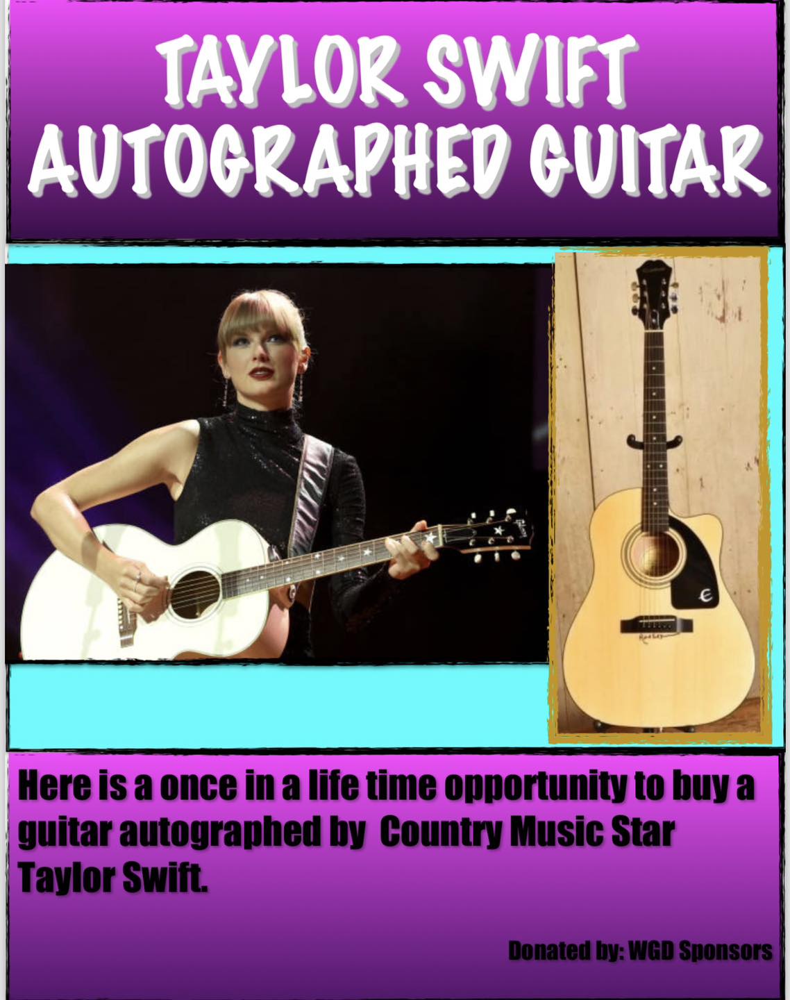 Οι διοργανωτές της φιλανθρωπικής εκδήλωσης είχαν προηγουμένως αναρτήσει στο Facebook την κιθάρα με την υπογραφή της Σουίφτ ως ένα από τα κορυφαία αντικείμενα προς δημοπρασία, χαρακτηρίζοντάς το ως μια «ευκαιρία που συμβαίνει μια φορά στη ζωή».