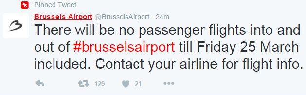«Το αεροδρόμιο θα παραμείνει κλειστό για τους ταξιδιώτες έως και την Παρασκευή. Δεν μπορούμε προς το παρόν να πούμε εάν οι εμπορικές πτήσεις θα επαναληφθούν το Σάββατο» δήλωσε η Άνκε Φράνσεν, εκπρόσωπος Τυπου του αεροδρομίου των Βρυξελλών.