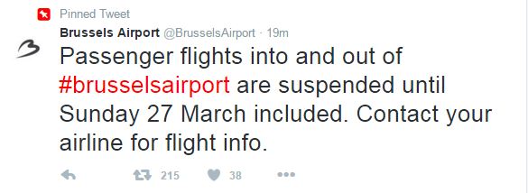 Το αεροδρόμιο των Βρυξελλών ανακοίνωσε ότι θα παραμείνει κλειστό για τις επιβατικές πτήσεις μέχρι και την Κυριακή, μετά τις βομβιστικές επιθέσεις από τις οποίες καταστράφηκε μεγάλο μέρος της αίθουσας αναχωρήσεων.