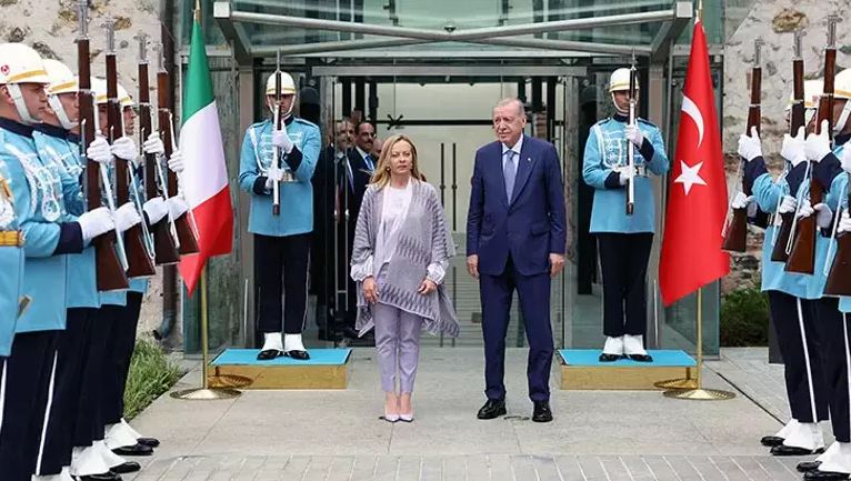 Ο Πρόεδρος Ερντογάν έκανε δύο διαφορετικές τελετές υποδοχής μία για την Μελόνι και μια για τον Λίβυο Ντιμπέιμπε, στο Προεδρικό Γραφείο, στο παλάτι του Ντολμάμπαχτσε. Στη συνέχεια και οι τρεις άρχισαν τις συνομιλίες, κεκλεισμένων των θυρών.