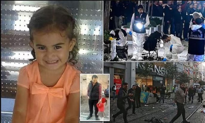 Θρήνος στην Κωνσταντινούπολη μετά την έκρηξη. Ένα μικρό κορίτσι, η Ecrin, και ο πατέρας της, Yusuf Medyan, επιβεβαιώθηκε ότι είναι μεταξύ των νεκρών, κατά την οποία τραυματίστηκαν περισσότεροι από 80 άνθρωποι.