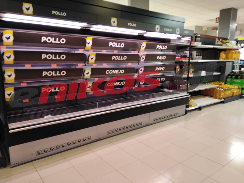 Αναγνώστρια του enikos.gr που βρίσκεται στη Μαδρίτη έστειλε φωτογραφίες στις οποίες απεικονίζονται τα άδεια ράφια στα σούπερ μάρκετ καθώς και οι Ισπανοί έχουν καταληφθεί από φόβο. Ήδη τα σχολεία έκλεισαν για 15 ημέρες. Όπως ανακοινώθηκε από το υπουργείο Υγείας της χώρας, τα κρούσματα έφθασαν τα 1.622 ενώ οι νεκροί ανήλθαν στους 35 από τους 16 το βράδυ της Κυριακής.