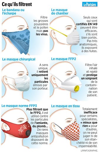 Στο εξής, μόνο τρεις τύποι μασκών θα πρέπει να φοριούνται σε δημόσιους χώρους, ακόμη και αν θα είναι δύσκολο να διασφαλιστεί στην πράξη ότι τηρείται αυτή η οδηγία: χειρουργικές μάσκες (αυτές που χρησιμοποιεί το ιατρικό προσωπικό), FFP2 (η πιο προστατευτική) και οι λεγόμενες βιομηχανικές μάσκες υφάσματος «κατηγορίας 1».