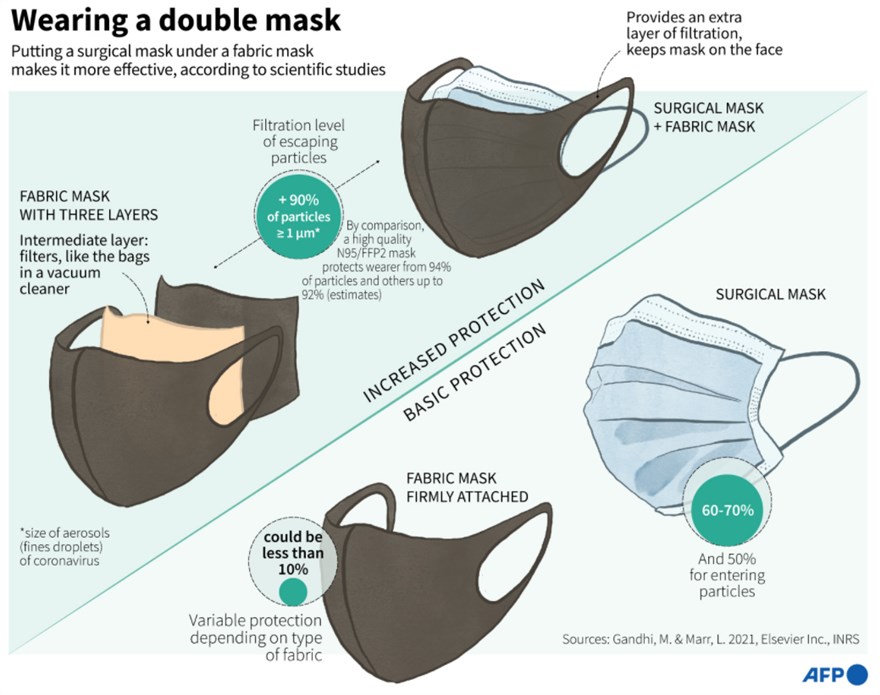 Ο Γάλλος υπουργός Υγείας, Olivier Véran, επιβεβαίωσε τις συστάσεις του γαλλικού Ανώτατου Συμβουλίου Υγείας σχετικά με τη χρήση υφασμάτινων μασκών, που τώρα θεωρείται ότι δεν μπορούν να προστατέψουν επαρκώς λόγω της εμφάνισης των μεταλλάξεων του κορονοϊού. Οι υφασμάτινες μάσκες δεν προσφέρουν επαρκές φιλτράρισμα και καθώς οι μεταλλάξεις του Covid-19, είναι πιο μεταδοτικές, συνίσταται στους πολίτες να προτιμούν τις χειρουργικές μάσκες.