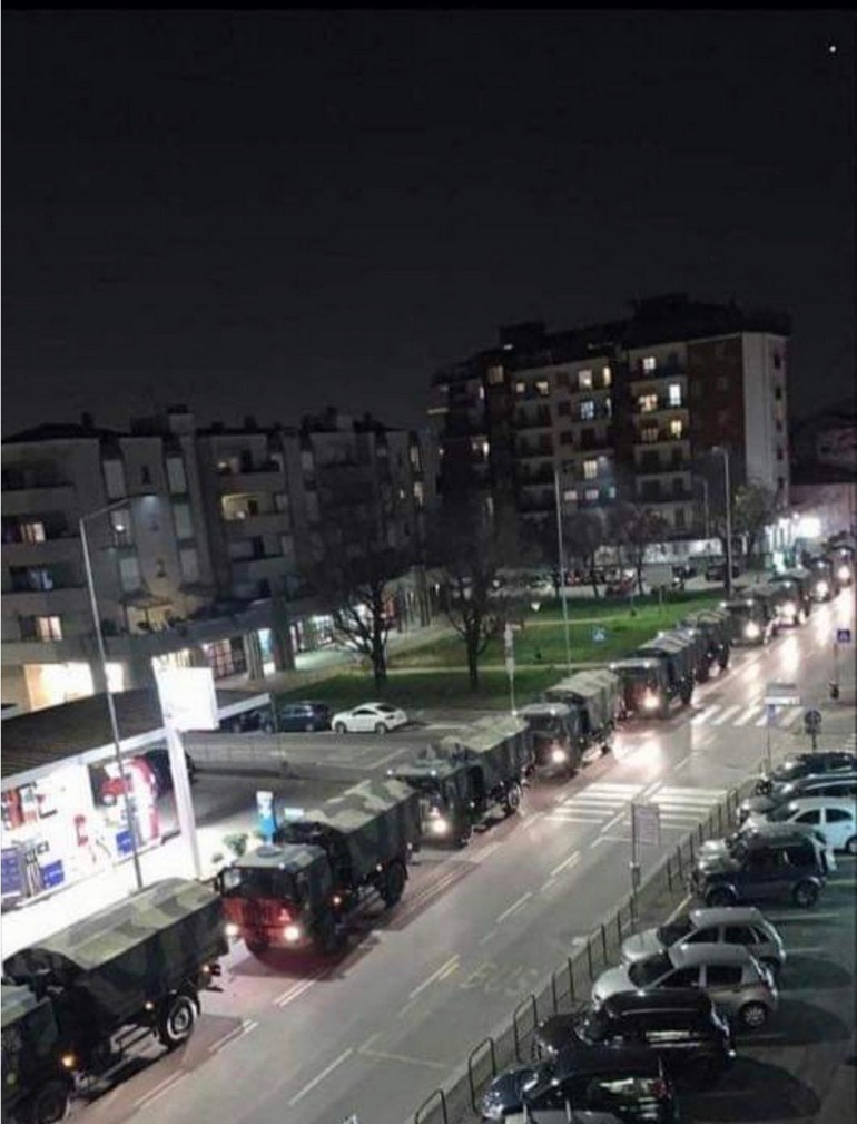 Μια φωτογραφία σοκ κυκλοφορεί στο διαδίκτυο. Δείχνει τον Ιταλικό στρατό με μεγάλο κομβόι να μεταφέρει τους νεκρούς στο Μπέργκαμο.
