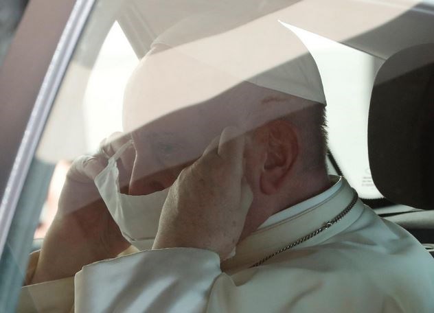 Χθες ήταν η δεύτερη φορά που ο ποντίφικας δέχτηκε σε ακρόαση πιστούς δια ζώσης, μετά από έξι μήνες που συνομιλούσε μαζί τους διαδικτυακά. Για πρώτη φορά, φορούσε μια λευκή μάσκα καθώς έμπαινε και έβγαινε από το αυτοκίνητό του και χρησιμοποιούσε κατά διαστήματα αντισηπτικό που του έριχνε στα χέρια ένας συνεργάτης του.