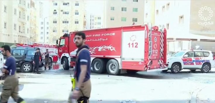 Το εξαώροφο κτίριο χρησιμοποιείτο για τη στέγαση 196 εργατών, είπε ένας αξιωματούχος της εταιρείας που τους απασχολούσε, κατά τη διάρκεια της επίσκεψης του υπουργού Εσωτερικών, σεΐχη Φαχντ αλ-Γιουσέφ, ο οποίος έσπευσε στο πλευρό των θυμάτων.
