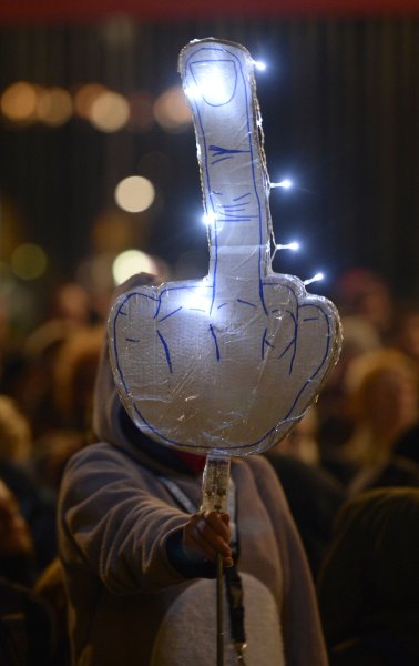 Ένα πανό που παρουσίαζε τη Γερμανίδα καγκελάριο ως Μητέρα Τερέζα είχε λεζάντα «Μητέρα Τερορέζα», συνδυάζοντας το όνομα Τερέζα με την τρομοκρατία.