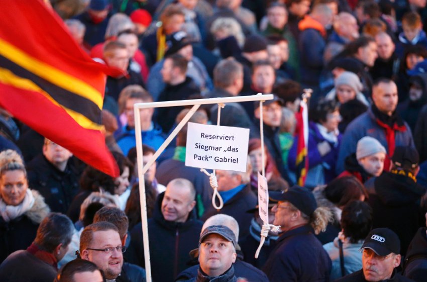 Γκιλοτίνα για τη Γερμανίδα καγκελάριο Άνγκελα Μέρκελ και τον αντικαγκελάριο Ζίγκμαρ Γκάμπριελ έστησαν κάποιοι από τους συμμετέχοντες στη χθεσινή διαδήλωση του αντιισλαμικού κινήματος Pegida στη Δρέσδη.