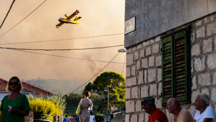 Ισχυροί άνεμοι περιέπλεξαν την επιχείρηση στο Τσιόβο, κοντά στο Σπλιτ, τουριστική πόλη, πάντως δεν απειλούνται κατοικίες, σύμφωνα με την πυροσβεστική.