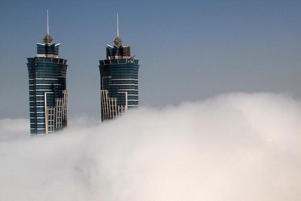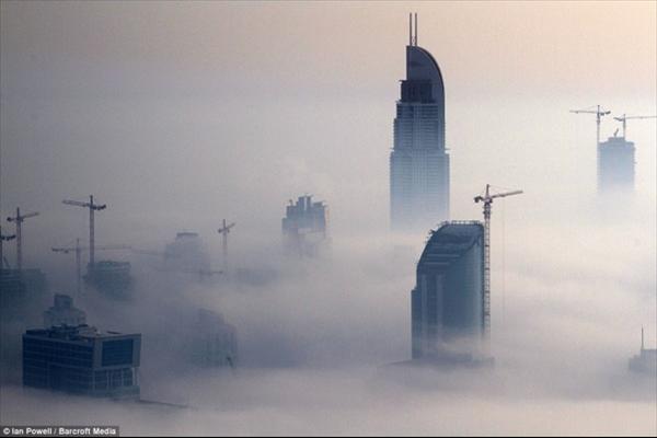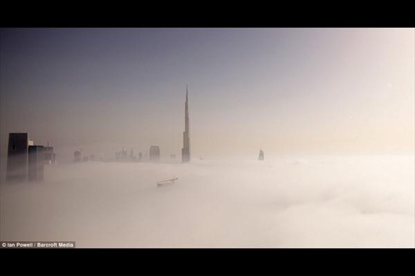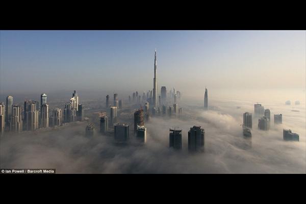 Οι ουρανοξύστες του Ντουμπάι κρύφτηκαν μέσα στα σύννεφα, όπως απαθανατίστηκαν σε φωτογραφίες που τραβήχτηκαν από ύψος 250 μέτρων. Το υψηλότερο κτίριο του κόσμου, ύψους 823 μέτρων, ξεπροβάλλει μέσα από την ομίχλη, ενώ σε άλλες φωτογραφίες τα φώτα των καταστημάτων και των διαμερισμάτων του Ντουμπάι φωτίζουν από μέσα την ομίχλη, την ώρα που δύει ο ήλιος!