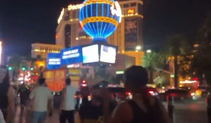 Η στιγμή των πυροβολισμών κοντά στα διάσημα σιντριβάνια Bellagio στο Λας Βέγκας, καταγράφηκε σε βίντεο που κυκλοφορεί στα social media.