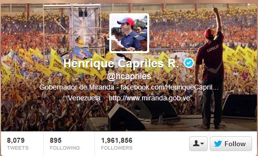 Επίθεση κατά της κυβέρνησης της Βενεζουέλας εξαπέλυσε μέσω του κοινωνικού δικτύου Twitter, ο ηγέτης της αντιπολίτευσης, Ενρίκε Καπρίλες, κατηγορώντας την για ψέματα σχετικά με την υγεία του προέδρου Ούγκο Τσάβες και τη μάχη που δίνει για να αντιμετωπίσει τον καρκίνο.