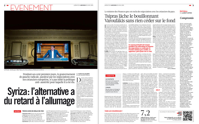 Με κεντρικό τίτλο: «Οι πρώτες 100 ημέρες που δεν άλλαξαν την Ελλάδα» κυκλοφορεί σήμερα η γαλλική εφημερίδα Liberation.