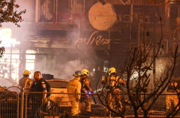 Σύμφωνα με τα πλάνα που μετέδωσε η δημόσια ισραηλινή τηλεόραση, ένα κτίριο χτυπήθηκε και πολλά αυτοκίνητα τυλίχθηκαν στις φλόγες.